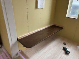 造作カウンターや収納、建具などが取り付けられ、少しずつ“住まいのかたち”が見えてきています。
