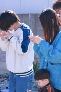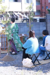地鎮祭が終わったあとは、シャボン玉で遊んだり、笑い声が響いたり。
